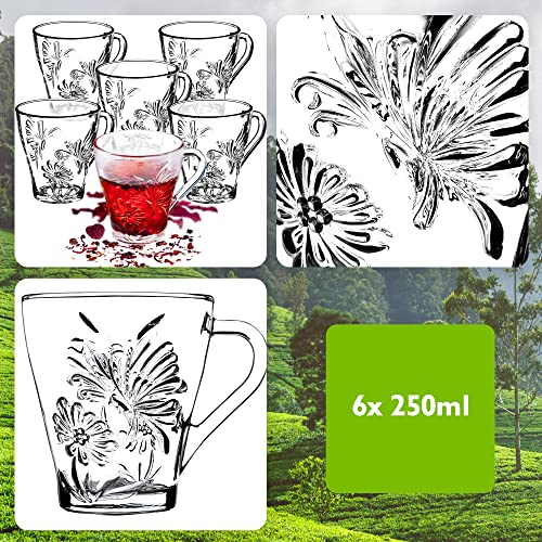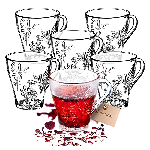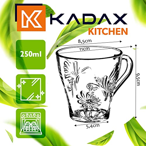 KADAX Szklanki z uchem, zestaw 6 sztuk, przezroczyste kubki do kawy, herbaty, soków, szklanki do wody, nadają się do mycia w zmywarce (Erna, 250 ml)
