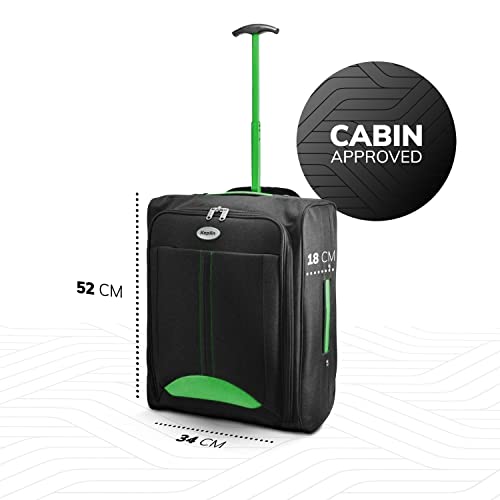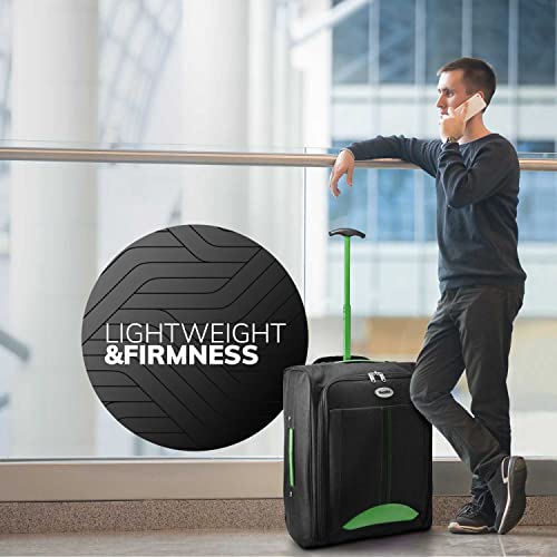 KEPLIN Zatwierdzona przez kabinę lekka torba podróżna z kółkami, wózek na bagaż podręczny, walizka, torba lotnicza (czarno-zielona)