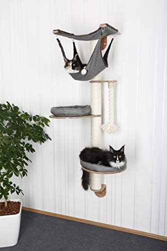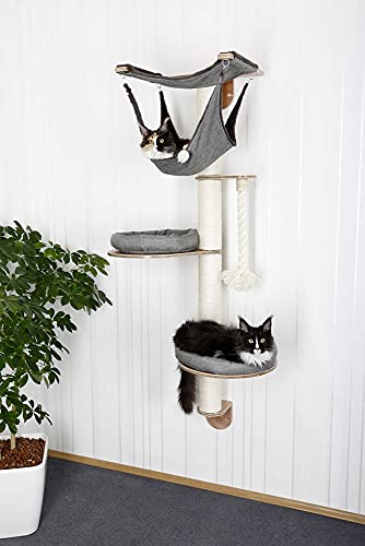 Einzelheiten: Set enthält: Wandkratzbaum Dolomit 2.0 TofanaHöhleHängematteLiegeflächeninkl. Sisalseil u. Webstoffkissen Produktbeschreibung zum Befestigen an der Wand Webstoffkissen mit Klettband, abnehmbar Höhe: 160 cm Hängematte: 35 x 33 cm Liegeflächen: ø 40 cm Stamm: ø 9 cm inkl. Sisalseil Sisal an den Säulen verklebt