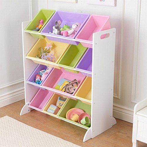 KidKraft 15450 pastelowy i biały sortuj go i przechowuj 12 pojemników organizer do zabawek, meble do sypialni dla dzieci