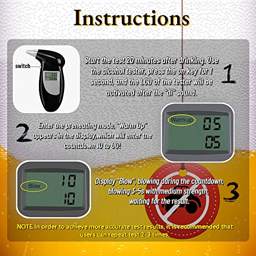 KIMISS Cyfrowy ekran LCD Tester alkoholu Tester alkoholu Przenośny brelokowy analizator oddechu z alkomatem 10/20/50 / PC (z 10 dyszami oddechowymi)
