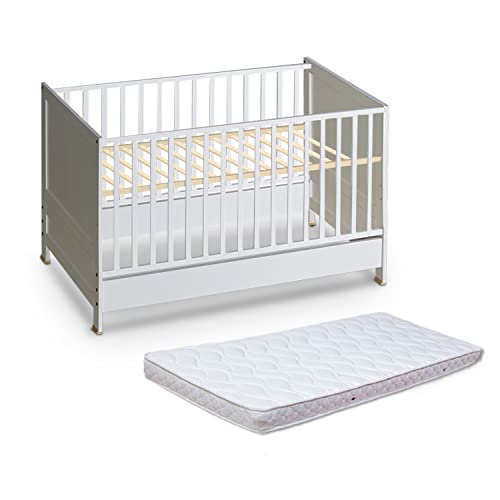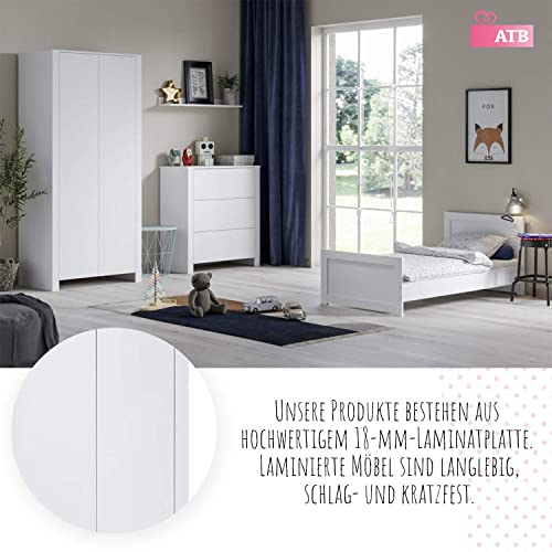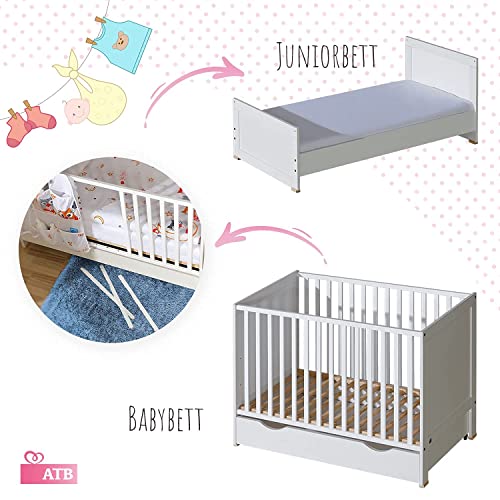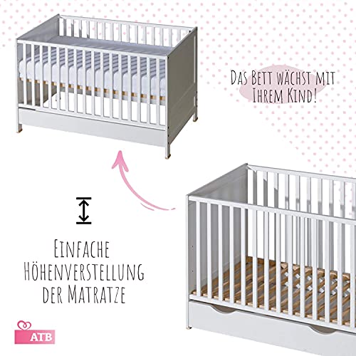 Łóżko dziecięce, łóżeczko dziecięce z materacem 70×140 | Wysokiej jakości łóżko zabezpieczające przed upadkiem | Łóżeczko dziecięce rosnące razem z dzieckiem | Białe, uniwersalne łóżko młodzieżowe – dziewczynki, chłopcy i niemowlęta | Nowoczesne, praktyczne łóżko od ATB Meble