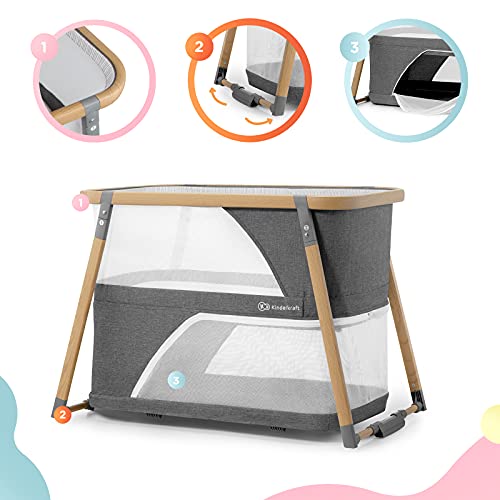 Kinderkraft Łóżeczko turystyczne 4w1 SOFI, Łóżko dziecięce, Kojec, Kołyska, Funkcja bujania, Szybkie składanie i rozkładanie, Dwa poziomy, Bezpieczny dla dziecka, Materac i Torba do transportu
