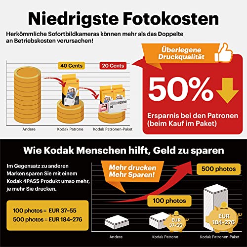 • Jakość Kodak: Technologia Kodak 4Pass umożliwia natychmiastowe drukowanie zdjęć w wysokiej rozdzielczości. Laminat ochronny zachowuje kolory Twoich zdjęć i chroni zdjęcie przed wodą i odciskami palców. Ponadto drukowanie zdjęcia zajmuje tylko 50 sekund. Nigdy więcej podróży do fotografa, dzięki drukarce Kodak Mini możesz wydrukować najlepsze ujęcia w zaciszu swojego telefonu komórkowego.