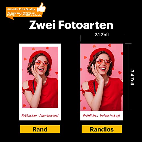 • Uwolnij swoją kreatywność: Możesz wybrać, czy wydrukować zdjęcia z ramką, czy bez. Ponadto za pomocą aplikacji Kodak (dostępnej dla telefonów komórkowych Apple iOS i Android) możesz dostosować swoje zdjęcia w podróży za pomocą pism, naklejek, filtrów i efektów specjalnych.
