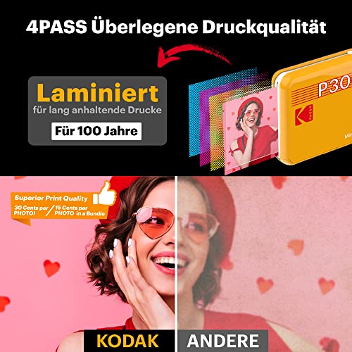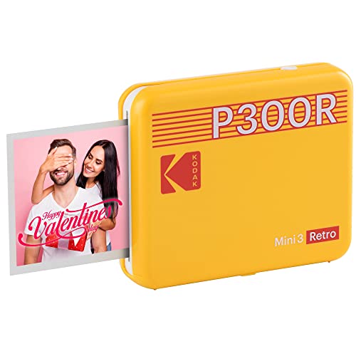 Kodak P300 Mini 3 Retro, mobilna drukarka fotograficzna, kompatybilna ze smartfonami (iOS i Android), Bluetooth, 76 x 76 mm, technologia 4Pass, laminowanie, 8 arkuszy, żółty