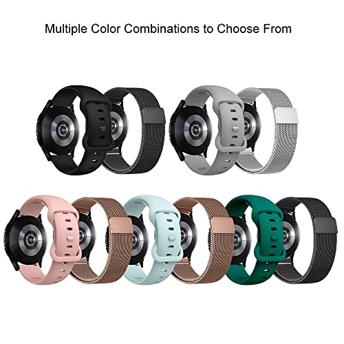 KoGiio Pasek 20 mm do zegarka Samsung Galaxy Watch 5 40 mm 44 mm / Watch 5 Pro 45 mm / Watch 4/4 Classic / Watch 3 41 mm / Gear S2 Classic, silikon + bransoletka ze stali nierdzewnej do Samsung Galaxy Watch Active 2