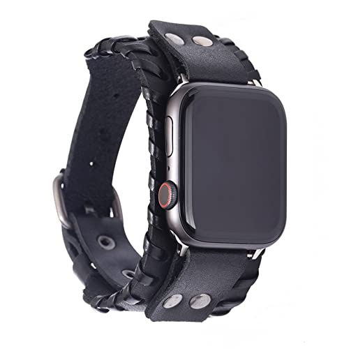 Kompatybilny z Apple Watch Band 38 mm/40 mm damski, czarny skórzany pasek, vintage pasek z prawdziwej skóry, stylowy pasek zastępczy kompatybilny z Apple Watch serii 7, 6, 5, 4, 3, 2, 1, SE