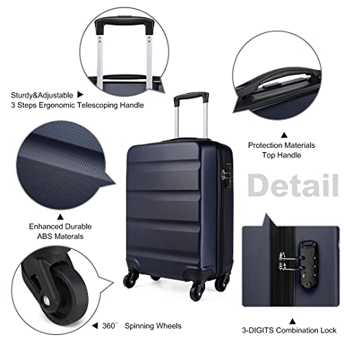 Kono Walizka podróżna z twardą skorupą, lekki bagaż podręczny z 4 kółkami obrotowymi i zamkiem szyfrowym, granatowy, L(75cm 90L)