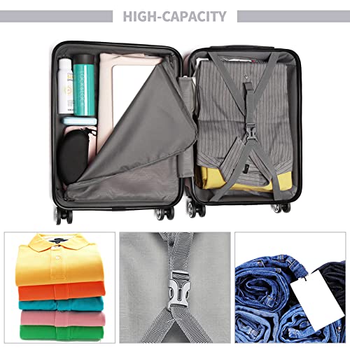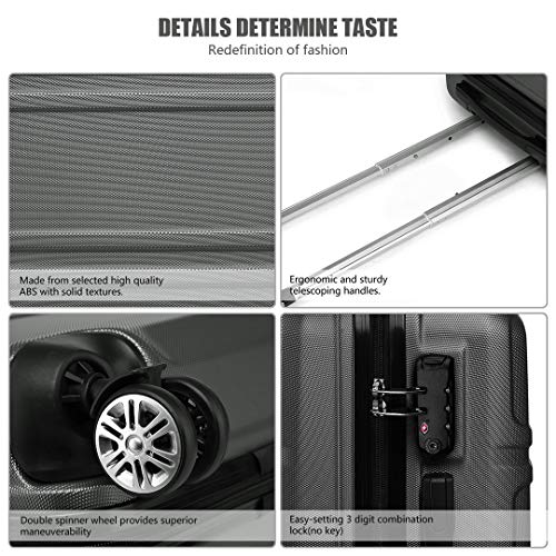 Kono Walizka kabinowa, lekka, podręczny bagaż ABS, 4 kółka obrotowe 55 x 40 x 22 cm, szary, 20″, Carry On