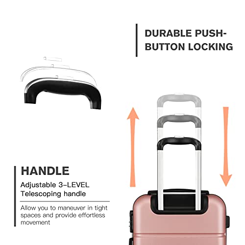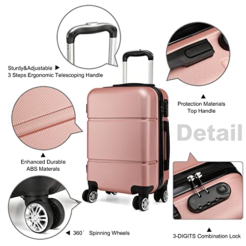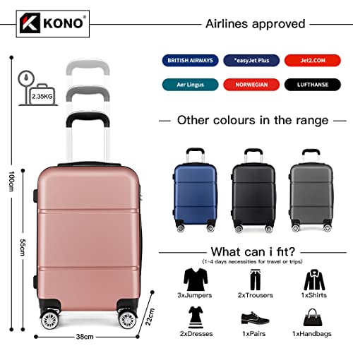 Kono Walizka 50 cm podróżna podręczna bagaż kabinowy twarda obudowa torba podróżna lekka, Różowe złoto, 55 x 38 x 20cm, Carry On…
