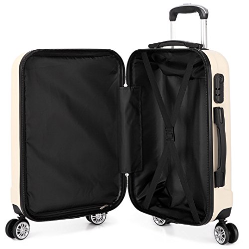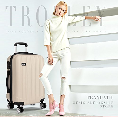 Kono Lekka walizka podróżna z twardą obudową ABS z 4 kółkami, BEŻOWY, 24 inch, Carry On