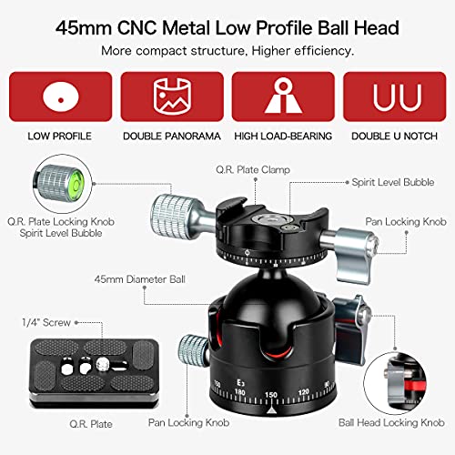 ✅ 🙂 Zdejmowana płyta: 🙂 Zdejmowana płyta szybkiego uwalniania, dostarczana ze śrubą 1/4 „, odpowiednia dla wszystkich lustrzanek jednoobiektywowych; dno kulki ma otwory na śruby 3/8”, można zamontować statywy i monopody.