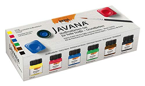 Kreul 90600 – Javana Stoffmalfarbe für helle Stoffe, Grundfarbenset, 6 x 20 ml Farbe und ein Pinsel, brillante Farbe mit cremigem Charakter, nach Fixierung waschbeständig