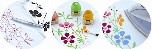 Diese cremig, brillianten Stoffmalfarben sind auf Wasserbasis hergestellt, sind mit Wasser verdünnbar und untereinander mischbar. Sie sind für helle Textilien aus Baumwolle, Viskose und Mischgewebe (bis max. 20 % Kunstfaseranteil) geeignet. Die Farben dringen tief in die Fasern ein. Nach der Fixierung (durch Bügeln oder im Backofen) sind die Farben waschbeständig (linksseitig bis 60° C). Sie erhalten 6 Töpfe mit je 20 ml Farbe in citron, karminrot, royalblau, brillantgrün, dunkelbraun und schwarz sowie einen Pinsel.