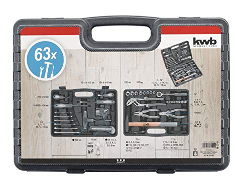 kwb Obudowa narzędziowa wykonana z wytrzymałego twardego tworzywa sztucznego, w tym 63-częściowy zestaw narzędzi wysokiej jakości jako solidne podstawowe wyposażenie do lekkich zastosowań w domu, w wa