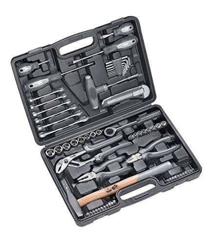 ✅ ALL-ROUNDER: Wyposażony w: ALL-ROUNDER: Wyposażony w najważniejsze narzędzia, 63-częściowy kwb Oprócz kluczy widelcowych i różnych gniazd, skrzynka narzędziowa, odwracalna grzechotka, sześciokątne klucze kołkowe i zestaw bitów ułatwiający pracę wkręcania.