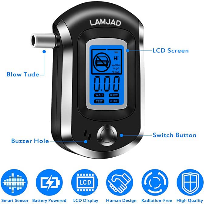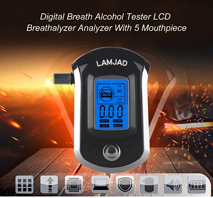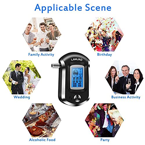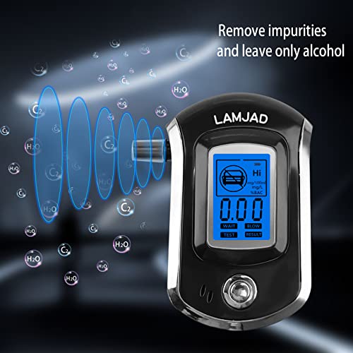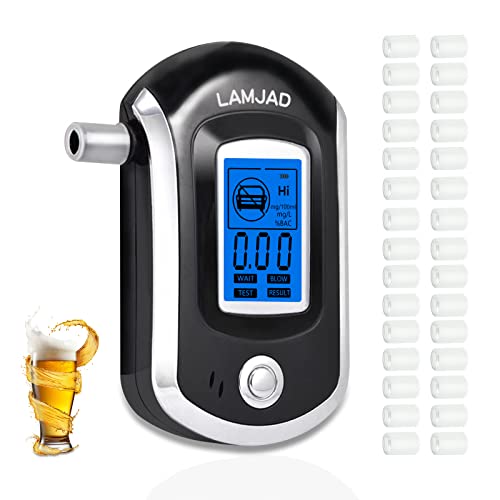 LAMJAD Alkomat, profesjonalny alkomat BAC z 31 ustnikami, przenośny, bardzo precyzyjny alkomat z cyfrowym ekranem LCD (AT6000)