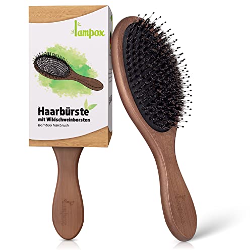 lampox Szczotka do włosów z włosiem dzika, masaż głowy, pielęgnacja włosów, szczotka do długich włosów i loków kobiet, mężczyzn i dzieci, szczotka do