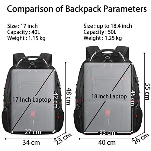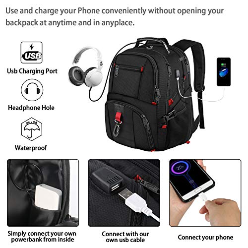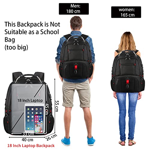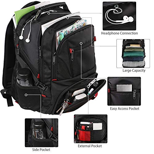 MATEIN Duży Plecak na Laptopa 17,3 Cala, Podróżny plecak na Laptopa Torba Biznesowa z Portem ładowania USB Wodoodporny antykradzieżowy do pracy Mężczyźn i Kobiety Plecak Szkolne Uniwersytet Czarny