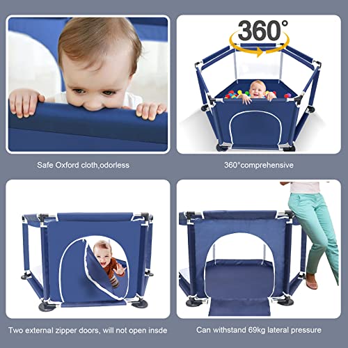 Kojec dla niemowląt, 6-kątny kojec dla niemowląt, centrum aktywności dla dzieci, wewnątrz i na zewnątrz, z antypoślizgową podstawą, stabilna kratka ochronna dla dzieci (niebieski)