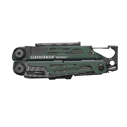Leatherman Narzędzie wielofunkcyjne Signal – 19 narzędzi do biwakowania i survivalu, z czarną nylonową kaburą, zielone