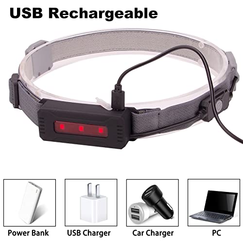 Latarka czołowa LED COB USB Akumulator 230 stopni Szeroka wiązka 350 lumenów Super jasne reflektory z czerwonym światłem ostrzegawczym z tyłu 3 tryby wodoodporne do uprawiania turystyki pieszej