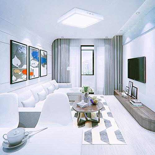 ONSSI lampa sufitowa LED, kwadratowa 22 x 22 cm, 20 W, zimna biel, 6000 K, powierzchnia, panel LED, oświetlenie do salonu, jadalni, sypialni, biura, sklepu, ONSSI LED