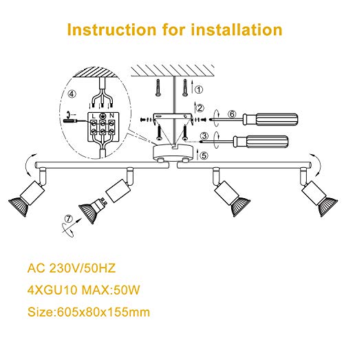 - 【Breite Anwendung】Unser Deckenstrahler 4 Flammig Rund kann überall eingesetzt werden, z. B. im Wohnzimmer, in der Küche, im Bad, auf dem Flur und im Treppenhaus. Es kann als Innenbeleuchtung an der Wand oder an der Decke montiert werden.kann verwendet werden als deckenlampe、deckenstrahler led