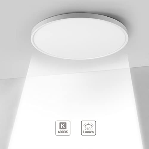 UBRAVOO lampa sufitowa LED, 24 W, 3200 lm, lampa sufitowa, 4000K, neutralna biel, okrągła lampa łazienkowa do kuchni, salonu, na balkon, do korytarza, łazienki, sypialni