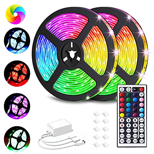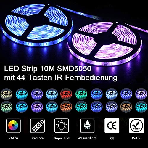 VOYOMO taśma LED 10 m, RGB, 300 diod LED SMD5050, 20 kolorów z pilotem zdalnego sterowania na podczerwień z 44 przyciskami, zasilacz 12 V 5 A, klasa wodoszczelności IP65, do oświetlenia, kuchni, na taras, imprezę i do całego domu