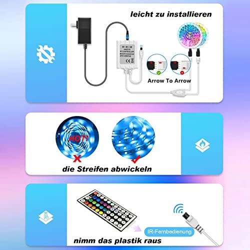 • 【Łatwy montaż】Dzięki elastycznemu materiałowi, na którym zamocowane są diody LED i samoprzylepnej tylnej stronie, listwę można z łatwością wszędzie zamontować. Zaciski mocujące wchodzą w zakres dostawy. Idealnie nadaje się do oglądania telewizji, ogrodu, na Boże Narodzenie, do klubu, na imprezę, przedstawienia teatralne, jako dekoracja wewnętrzna i zewnętrzna itd.