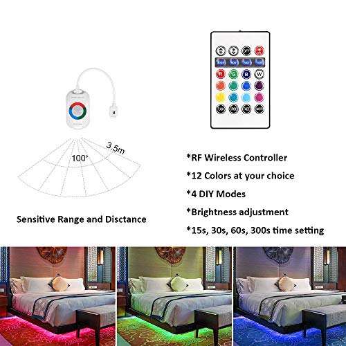 AveyLum taśma LED z czujnikiem ruchu RGB, wielokolorowa lampka nocna, przyciemniana listwa oświetleniowa z czujnikiem ruchu, 2 x 1,5 m długości z pilotem zdalnego sterowania, timer