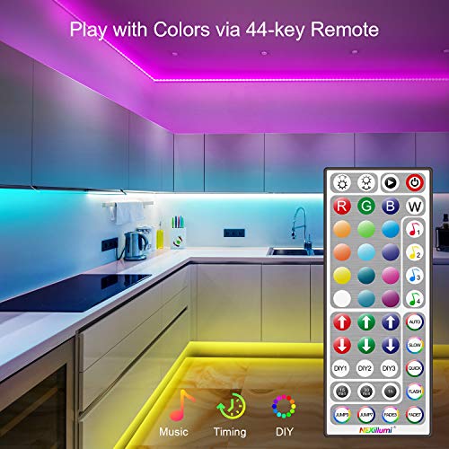 • 【Łatwa instalacja】 Zestaw zawiera 2 rolki listew świetlnych LED 5 m, 1 x pilot zdalnego sterowania z 44 przyciskami, 1 x skrzynka sterująca, 1 x zasilacz, 1 x instrukcja obsługi (może nie być dostępna w języku polskim). Dzięki klejowi do pleców i elastycznemu paskowi taśmy świetlne LED można łatwo przykleić na każdej suchej i równej powierzchni. (Wskazówka: przed instalacją należy oczyścić powierzchnię)