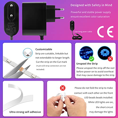 • 【Zasilacz z Certyfikatem CE i Szeroko Stosowany】Zasilacz 24V z certyfikatem CE do lamp taśmowych w zestawie dla lepszego nasycenia kolorów i jasności światła w sypialniach listwy oświetleniowe; Przedłużony kabel zasilacza i kabel skrzynki sterowniczej rozszerzają więcej scenariuszy zastosowań, takich jak sypialnia, kino domowe, kuchnia, szafa itp.