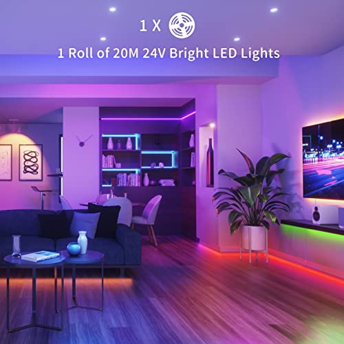 Taśma LED 20M, 24V taśma LED RGB, SMD 5050 Paski Led sterowana za pomocą aplikacji i pilota, z trybem muzycznym, Wi-Fi, 16 milionów kolorów, 28 trybów dynamicznych, do domu, sypialni, kuchni, imprezy