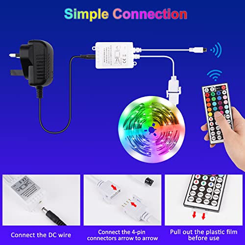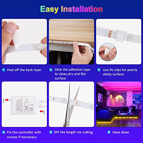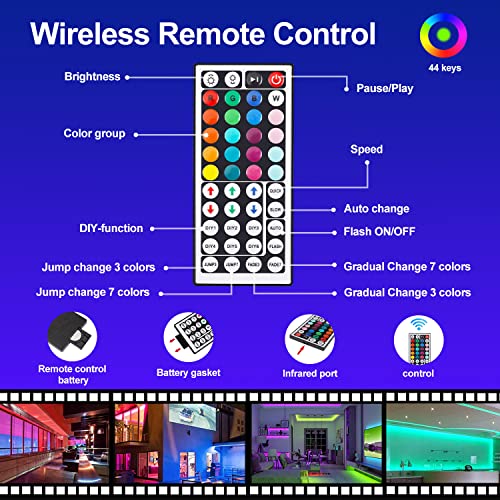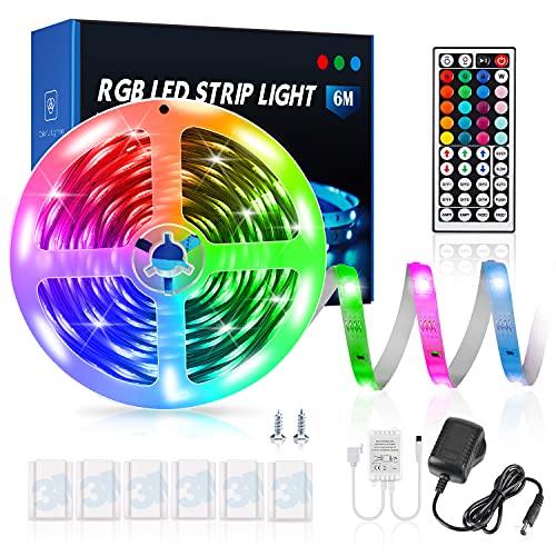 Taśma LED 6 m, 16 milionów kolorów, z pilotem zdalnego sterowania z 44 przyciskami, chip LED 5050, funkcja pamięci, kolory DIY, do kuchni, na imprezę, do sypialni, telewizora