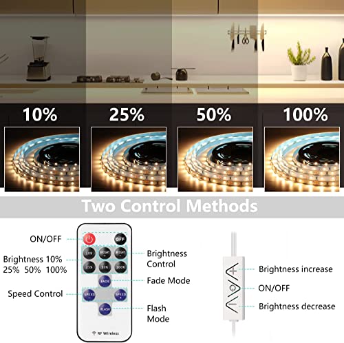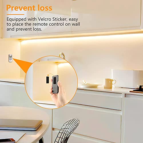 Taśma LED ciepła biel 3 m, lampa podszafkowa pod szafką, zestaw oświetlenia LED z pilotem zdalnego sterowania, do witryny, kuchni, biurka, regału, szafy, podświetlenia tła, 3000 K