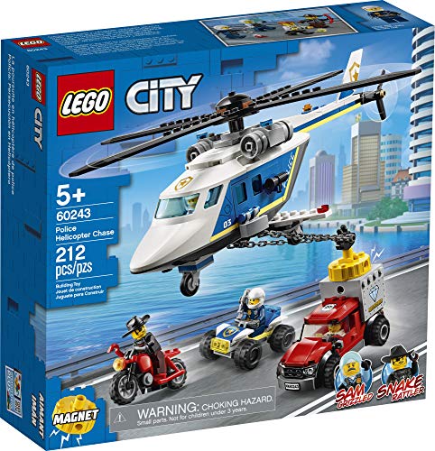 • Kinder, die sich für Rollenspiele begeistern, lieben das LEGO City Spielset „Verfolgungsjagd mit dem Polizeihubschrauber“ (60243) mit funktionierender Magnetkette für die Ganovenjagd. Das LEGO City Polizei-Set „Verfolgungsjagd mit dem Polizeihubschrauber“ (60243) enthält einen Hubschrauber mit kräftigem Magneten, der magnetische Objekte wie das Fluchtfahrzeug der Ganoven einfach in die Luft zieht! Cooles Spielzeug für Kinder, die actionreiche Verfolgungsjagden lieben.