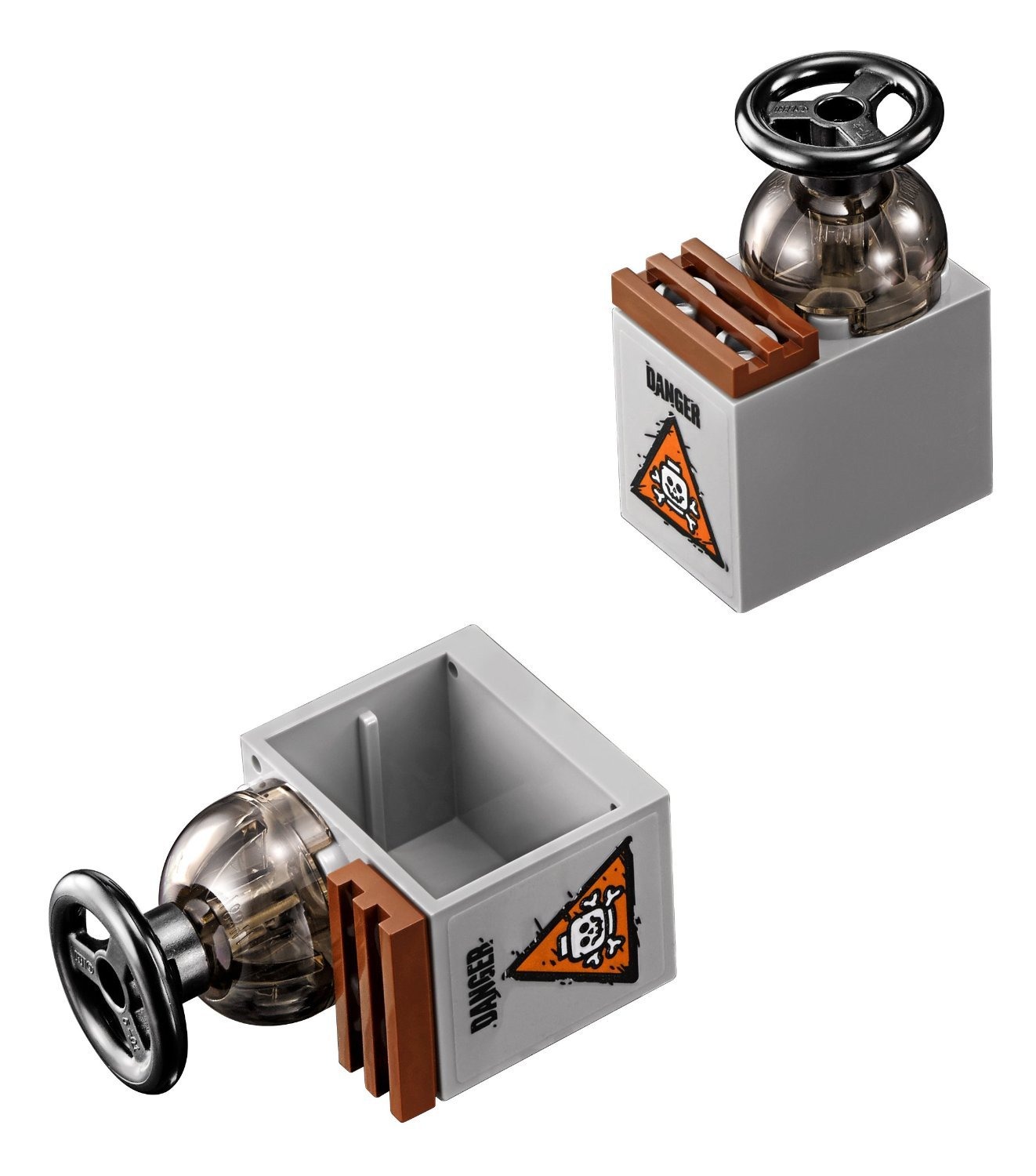 - Crossbones Flucht-Truck verfügt über große Räder, ein abnehmbares Dach mit zwei Shootern und einen Lenker, den eine Minifigur halten kann, eine Ladefläche am Heck mit Sprengfunktion, einen Aufbewahrungsbehälter, eine Kiste mit giftigem Gefahrgut sowie Crossbones-Verzierung