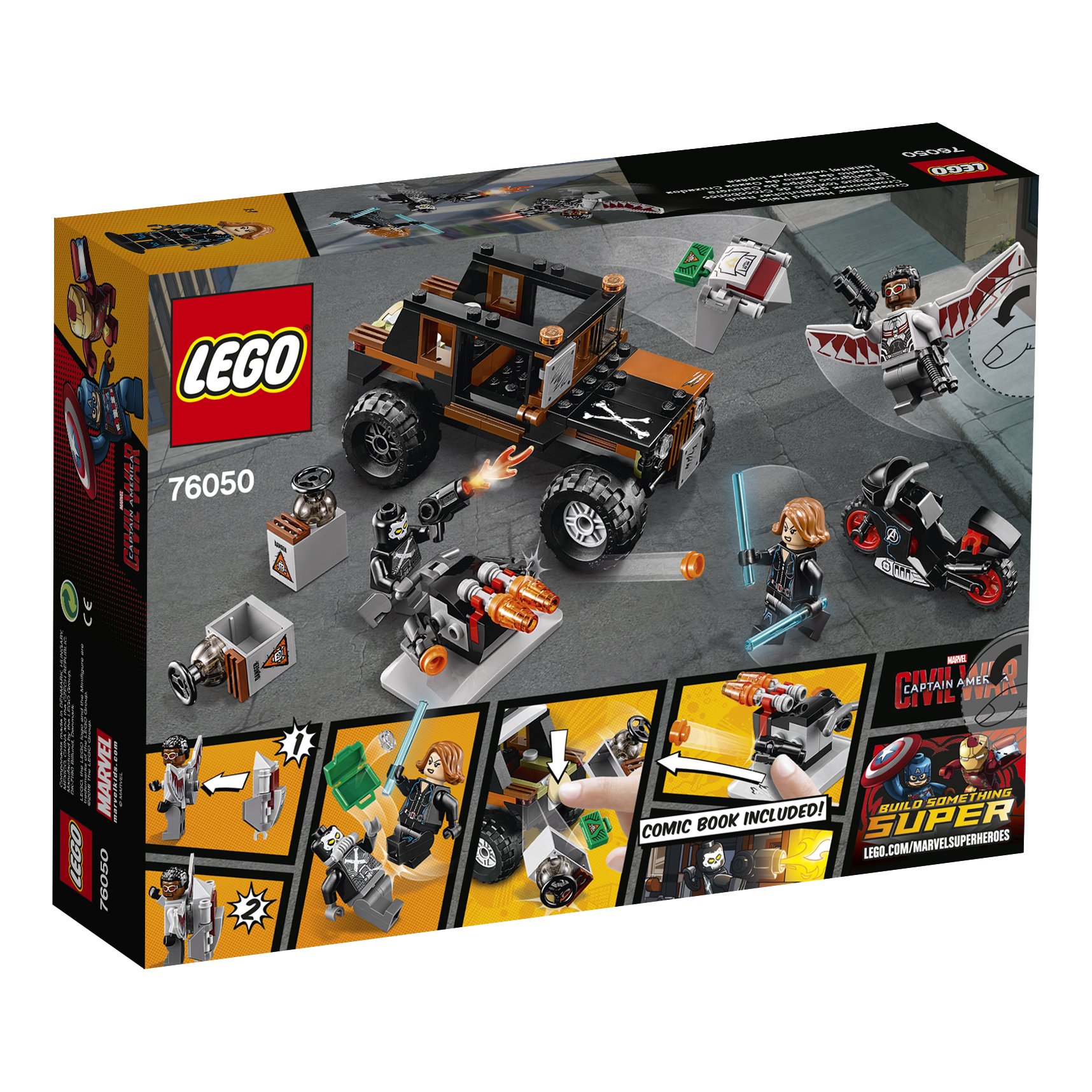 - Enthält Drei Minifiguren: Crossbones, Black Widow und Falcon