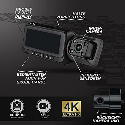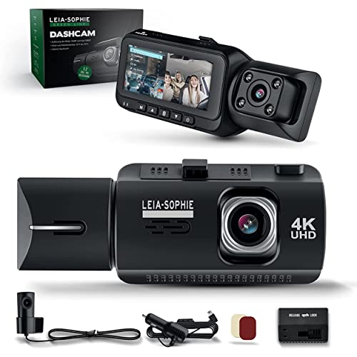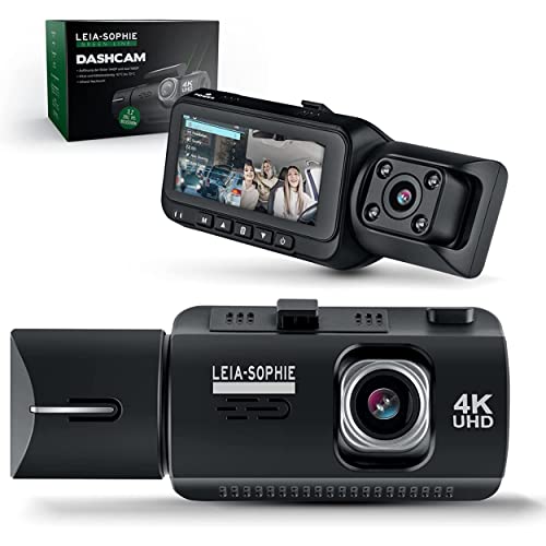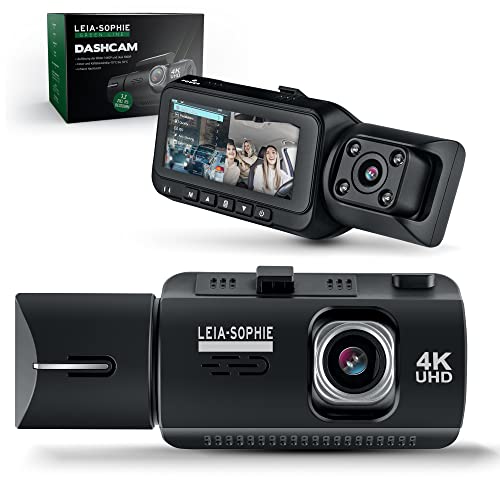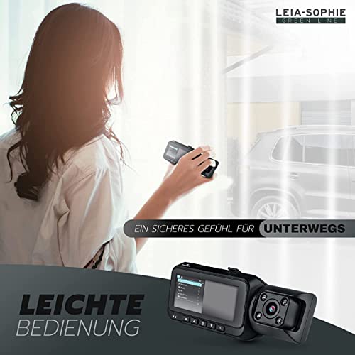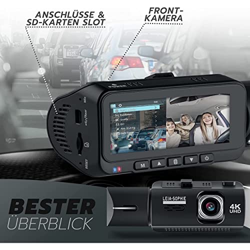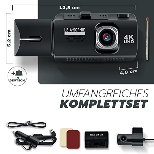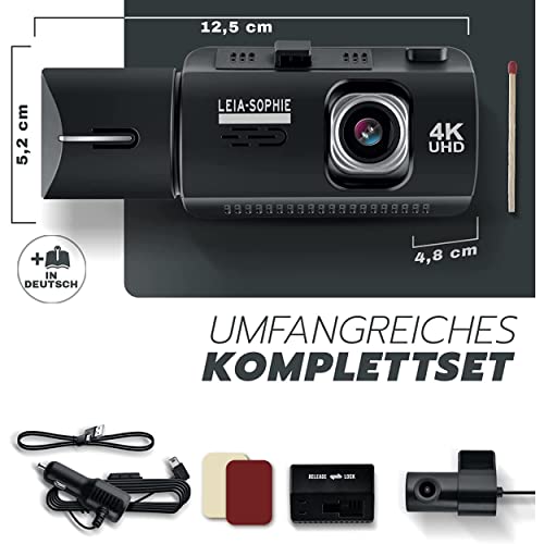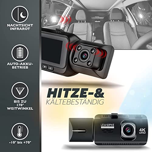 Leia-Sophie Mini kamera na deskę rozdzielczą 4K – soczewka UHD o wysokiej rozdzielczości, zasilana akumulatorem, noktowizor na podczerwień, wyświetlacz IPS, 3,2 cala, odporna na wysokie i niskie temperatury, kabel USB do ładowania samochodowego, niemiecki sprzedawca