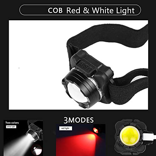 Wydajny reflektor USB do ponownego ładowania, reflektor COB-LED, 1200 lm, reflektor z wbudowaną baterią, wodoszczelny, biały czerwony reflektor do wędrówek, biegania, na kemping, wędkowania