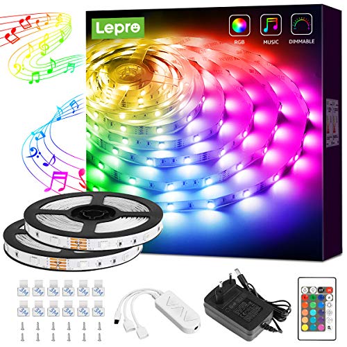 Lepro Taśma LED 10 m (5 m x 2), łańcuch świetlny z pilotem zdalnego sterowania, 5050 SMD 300 diod LED, RGB, ściemniana listwa świetlna, listwa świetln