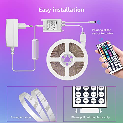 LE Taśma LED 15 m, taśma RGB, 5050 SMD 450 LED, 12 V, samoprzylepna taśma świetlna z pilotem zdalnego sterowania z 44 przyciskami, elastyczna listwa LED, łańcuch świetlny LED do domu, na imprezę, do