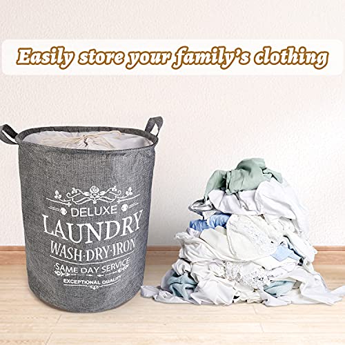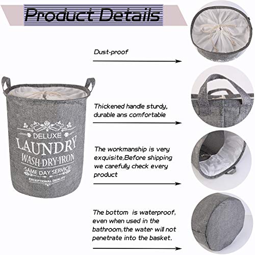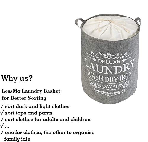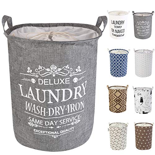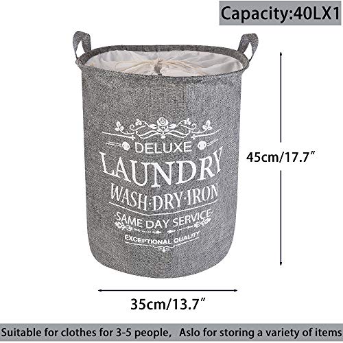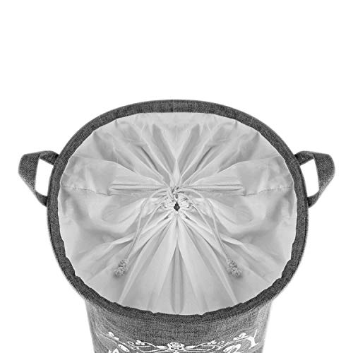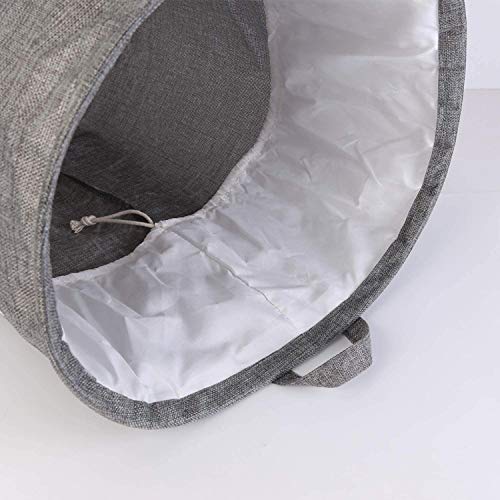 LessMo 43 cm kosz na pranie ze sznurkiem, kosz na pranie, składany, wodoszczelny, okrągły bawełniany len, do sypialni, przechowywania, na ubrania dla niemowląt, zabawki