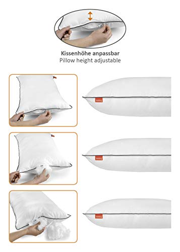 liebling Poduszka hotelowa twarda 40 x 80 cm, poduszka z regulacją wysokości 40 x 80 cm, poduszka, 100% bawełna z szarą lamówką, wyprodukowano w UE, Ö