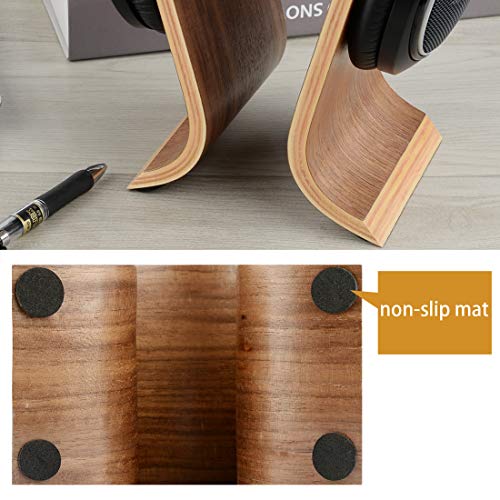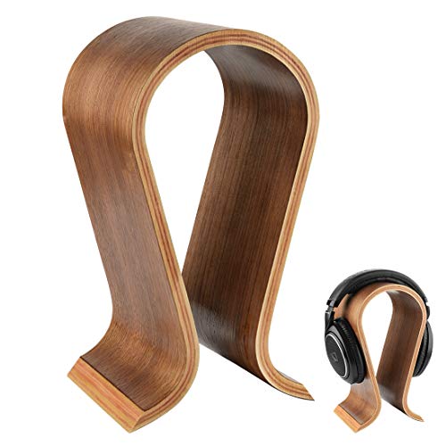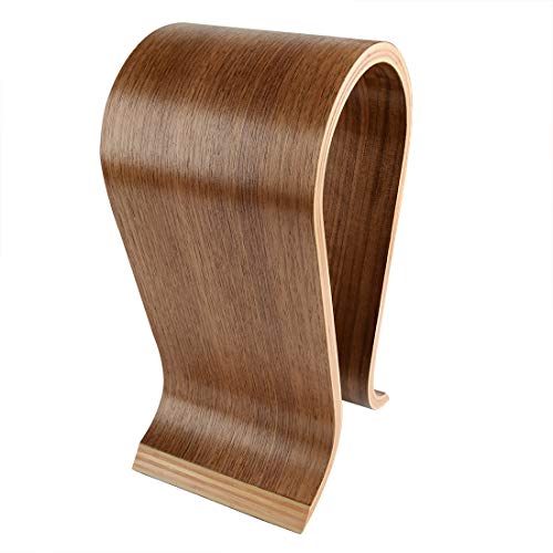 Linkidea Drewniany stojak na słuchawki Omega – uchwyt na słuchawki / wieszak na biurko na słuchawki z wykończeniem orzechowym