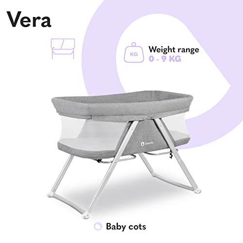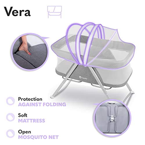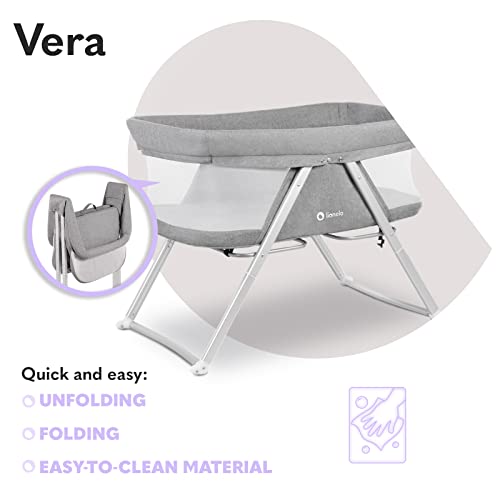 LIONELO Vera łóżeczko turystyczne, funkcja kołyski, wysokiej jakości materac, rozpinana moskitiera, cyrkulacja powietrza, torba transportowa w zestawie, uniwersalny design
