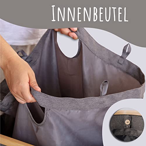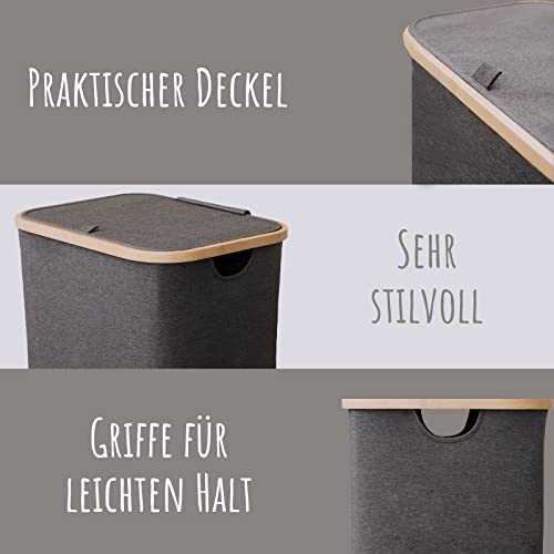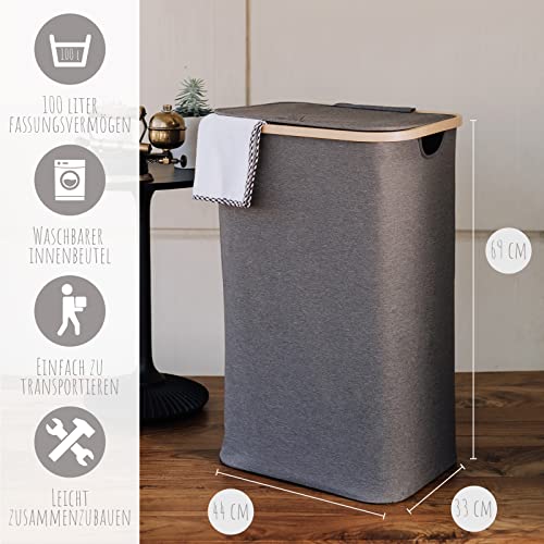 Lonbet – Kosz na pranie z pokrywką duży – XXL 100 litrów – kosz na pranie drewno bambusowe – kosz na pranie szary z uchwytami – szary Laundry Basket – Laundry Hamper with Lid